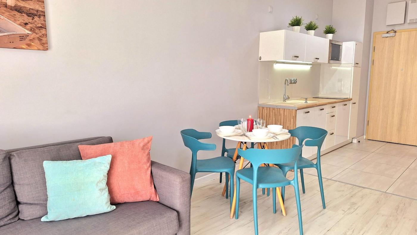 Studio z balkonem. In the well-fitted kitchenette, guests will find a stovetop, a refrigerator, a dishwasher and kitchenware. The studio offers a washing machine, a private entrance, a terrace with city views as well as a private bathroom boasting a walk-in shower. The unit has 2 beds. Studio - 4 osobowy. Powierzchnia pokoju ok.: 29 mkw.