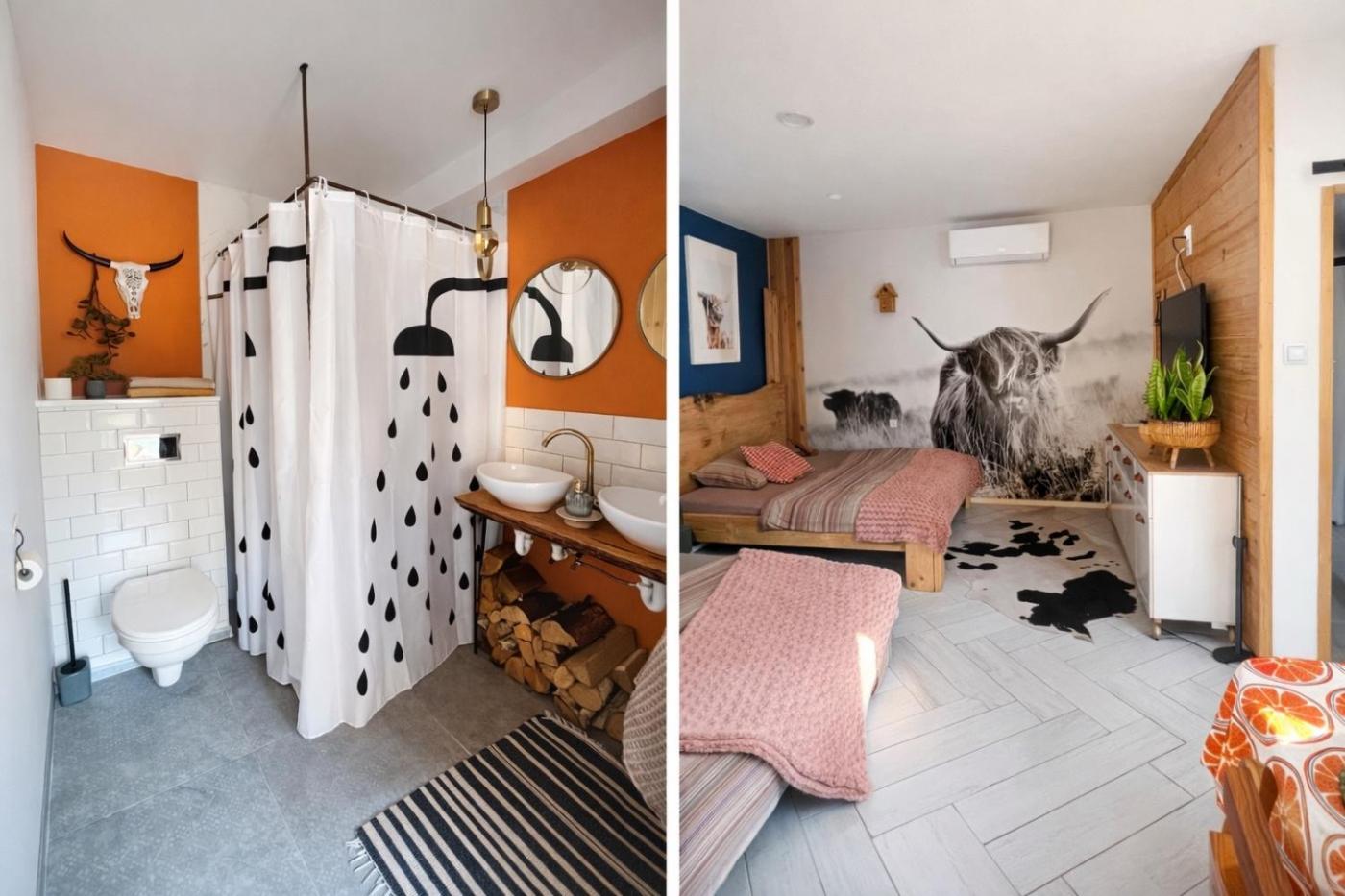 Pokój Dwuosobowy typu Deluxe z wanną. The double rooms kitchen is available for cooking and storing food. This air-conditioned double room features a private bathroom, a washing machine, heating as well as a terrace. The unit offers 1 bed. Pokój Dwuosobowy - 2 osobowy. Powierzchnia pokoju ok.: 23 mkw. ;