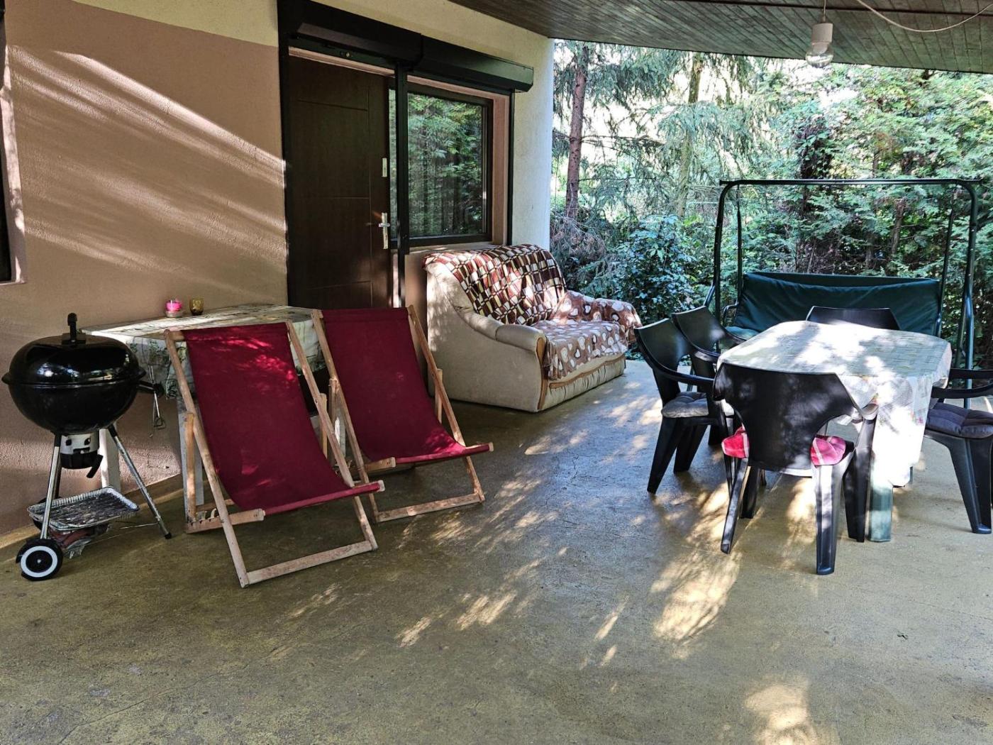 Dom wakacyjny. This holiday home features 1 living room, 2 separate bedrooms and 1 bathroom with a bath or a shower. The holiday homes kitchenette, which features a refrigerator and kitchenware, is available for cooking and storing food. The holiday home has a terrace. The unit has 3 beds. Dom wakacyjny - 5 osobowy. Powierzchnia pokoju ok.: 80 mkw.