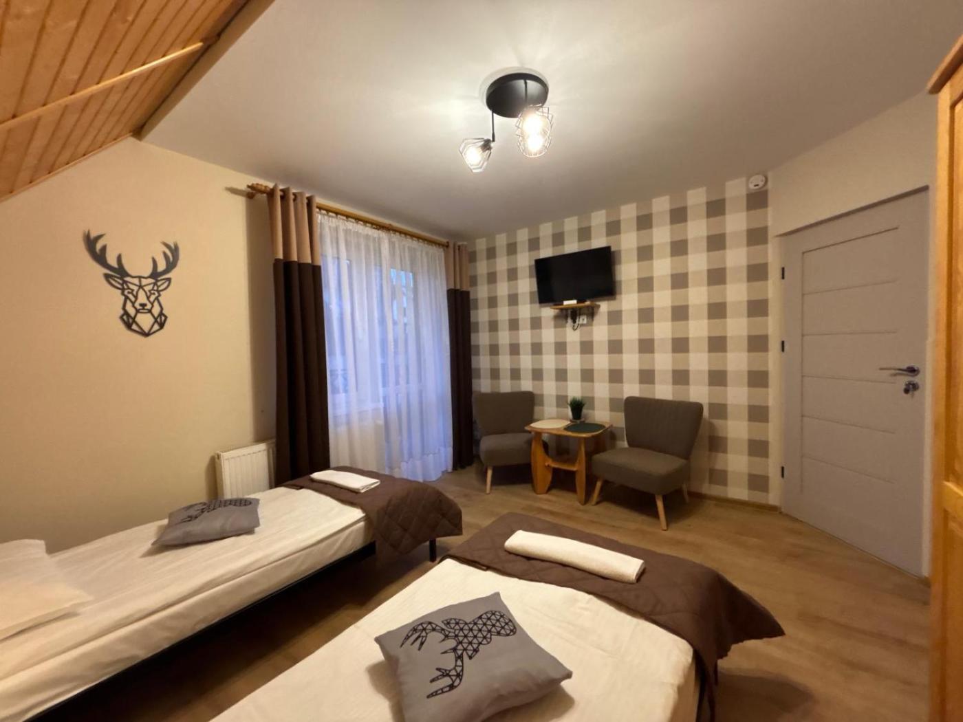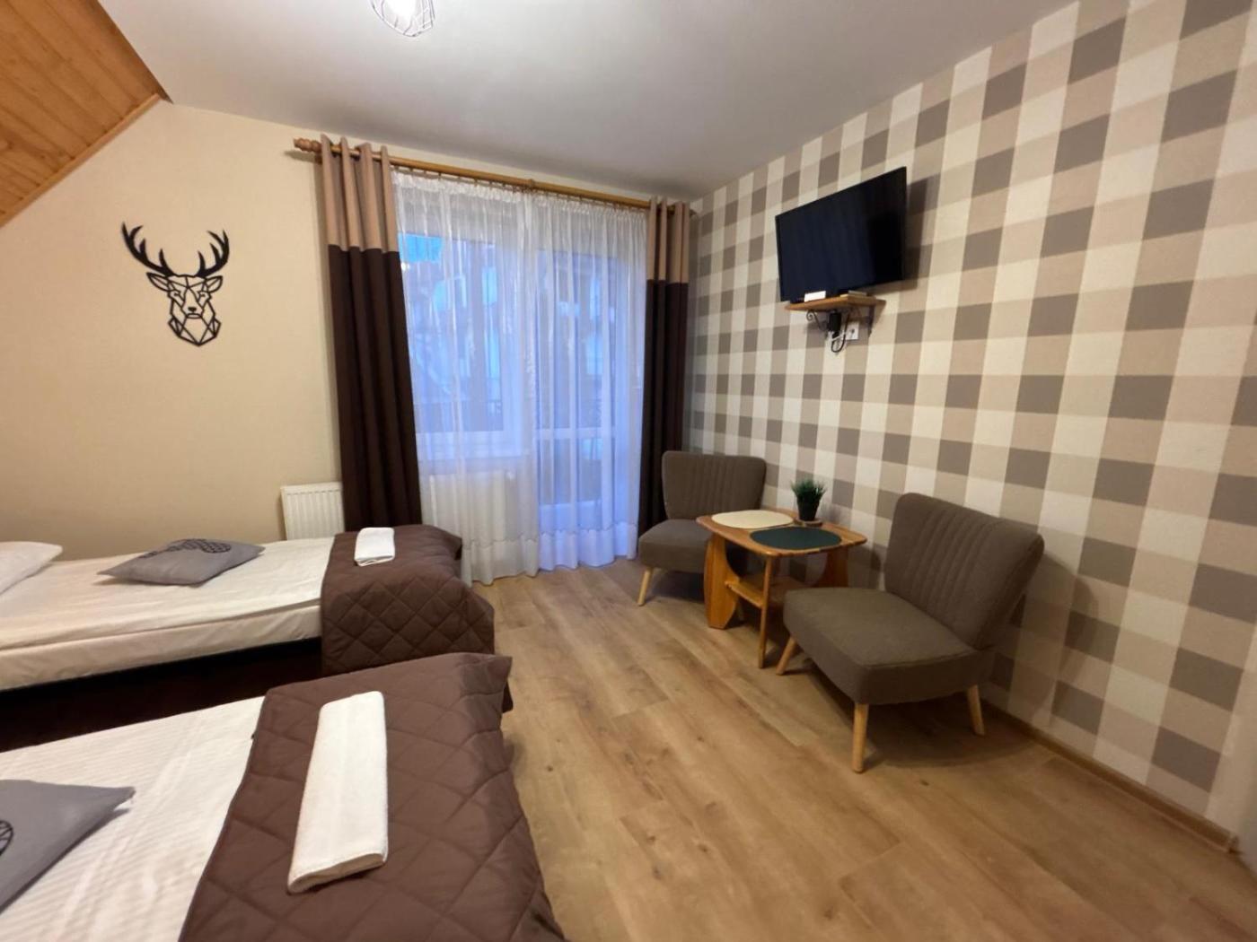 Pokój Dwuosobowy z balkonem. The double rooms kitchen, which features kitchenware and a tea and coffee maker, is available for cooking and storing food. This double room includes a flat-screen TV with satellite channels, a private bathroom as well as a balcony with mountain views. The unit offers 1 bed. Pokój Dwuosobowy - 2 osobowy. Powierzchnia pokoju ok.: 16 mkw. ;