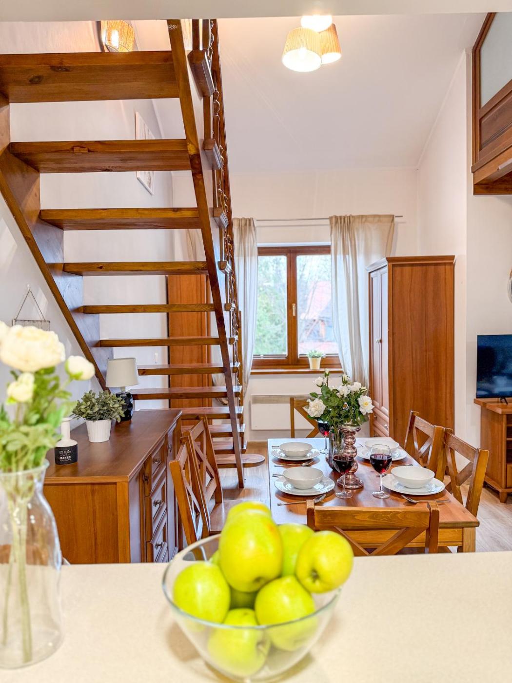Apartament z 1 sypialnią. Boasting a private entrance, this apartment comes with 1 living room, 1 separate bedroom and 1 bathroom with a shower and a hairdryer. The well-equipped kitchen has a stovetop, a refrigerator, a dishwasher and kitchenware. Featuring a balcony with garden views, this apartment also features a tea and coffee maker and a flat-screen TV. The unit has 2 beds. Apartament - 6 osobowy. Powierzchnia pokoju ok.: 53 mkw.